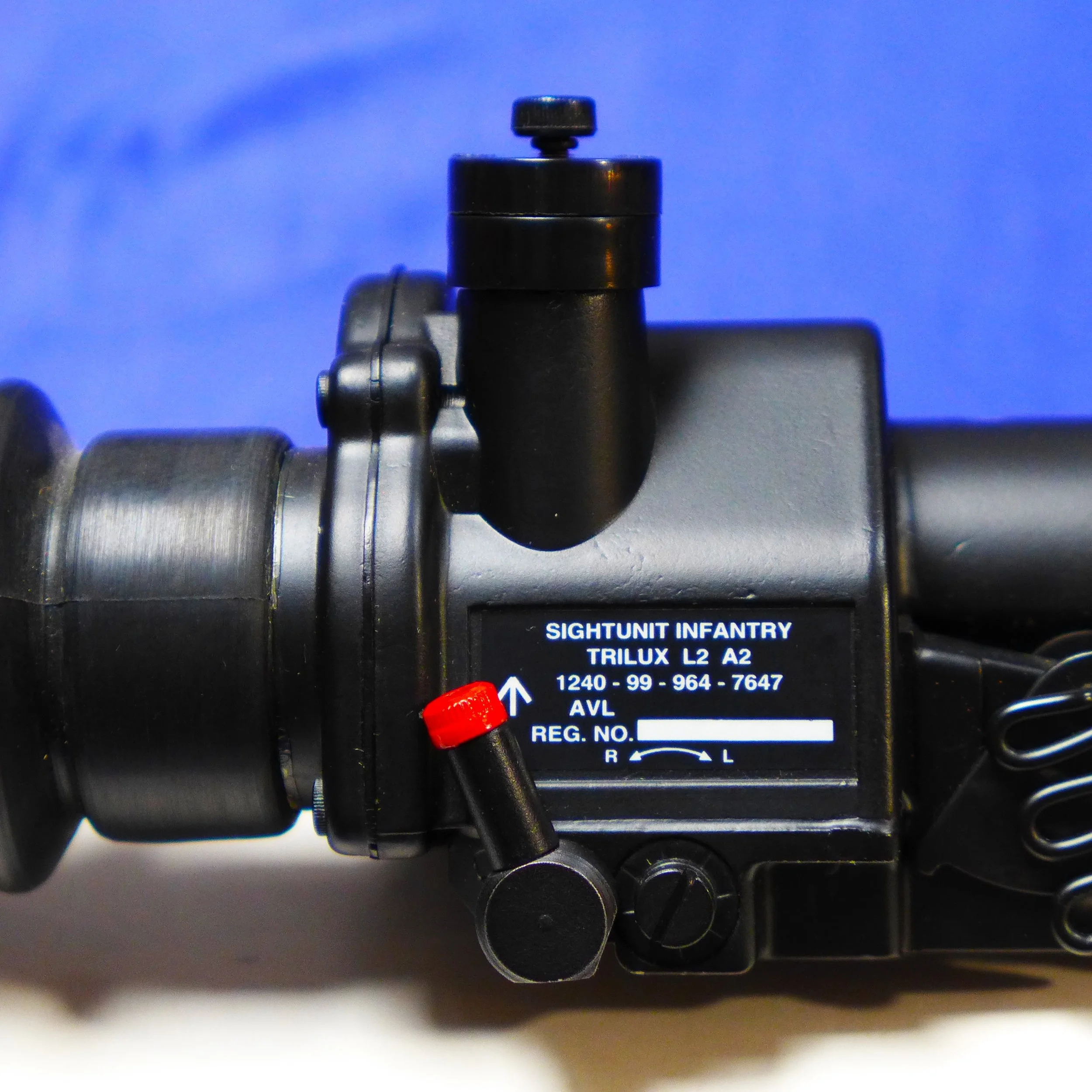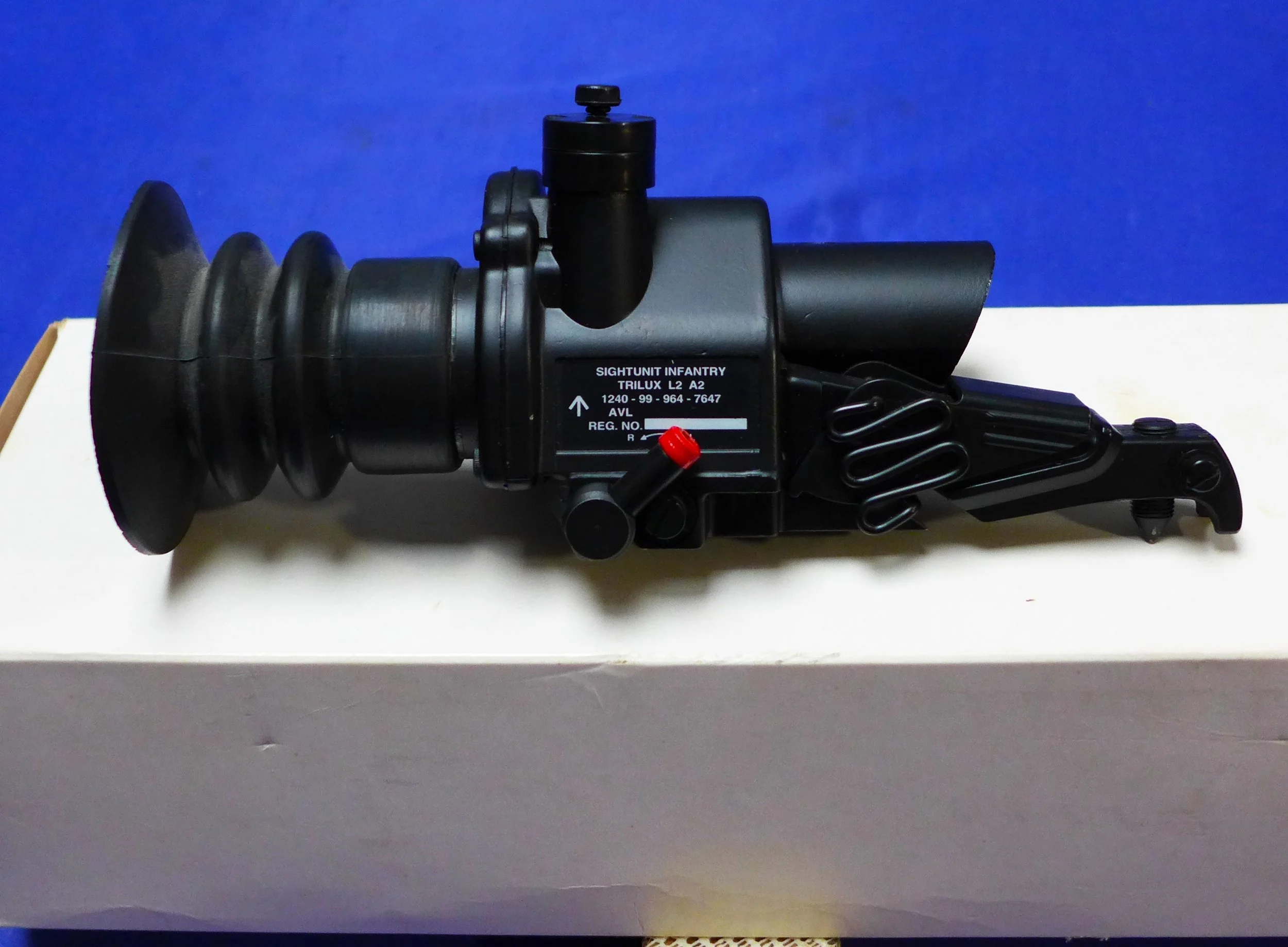 Our selection of training and precision shooting iron sights as well as accessories S.U.I.T. Sight Pouch SOLD £40.00 Sold out S.U.I.T Sight Mount SOLD £175.00 Sold out Sight Unit Infantry Trilux L2A2 (SUIT Sight) SOLD £895.00 Sold out Alf J Parker TZ. K/68 Target sight £145.00 Parker Hale P14 target sight adapted to fit the Enfield No4 rifle £155.00 L1A1 SLR Cleaning Kit £50.00 German K98 Post war Cleaning Kit £35.00 Adaptor to allow a U.S. Bayonet to be carried on British Pattern 37 webbing £10.00